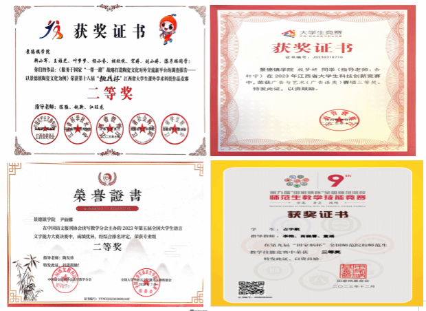 学院注重学生全面发展,积极组织学生参加各类专业技能竞赛和学科竞赛,取得了优异成绩。 近年来,学生在“挑战杯”江西省大学生课外学术科技作品大赛、江西省大学生科技创新竞赛、“华文杯”“田家炳杯”等全国师范院校师范生技能大赛、全国大学生语言文字大赛中屡获突破,展现了学院人才培养的显著成效。此外,学院还注重学生心理健康教育和职业规划指导,为学生提供全方位的支持和服务。