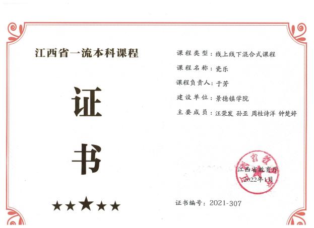 《瓷乐》课程获江西省精品在线课程、线上线下混合式课程