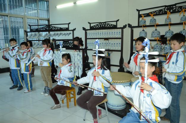 依托学校的两块金字招牌,学院致力于“瓷乐”“景德镇大鼓”两项非物质文化遗产的传承与创新。开发特色校本课程《瓷乐》并编写了专著,该课程在江西学银在线顺利运行至第14期,课程点击量达300万人次,先后获评江西省首批精品在线开放课程、江西省线上优质课程一等奖、江西省“线上线下混合式”一流本科课程;打造了集陶瓷乐器产、学、研一体的景德镇市重点实验室,创新研发的瓷马林巴、瓷拍筒、瓷风帆等十余件新型陶瓷乐器擘画了中国陶瓷乐器研究发展的“新底色”;为景德镇第七小学、陶阳学校、浮梁一小、景德镇市第十五小组建了少儿瓷乐团、少儿大鼓队,构建高校与基础教育相结合的人才培养新平台,推动了非遗文化的传承。