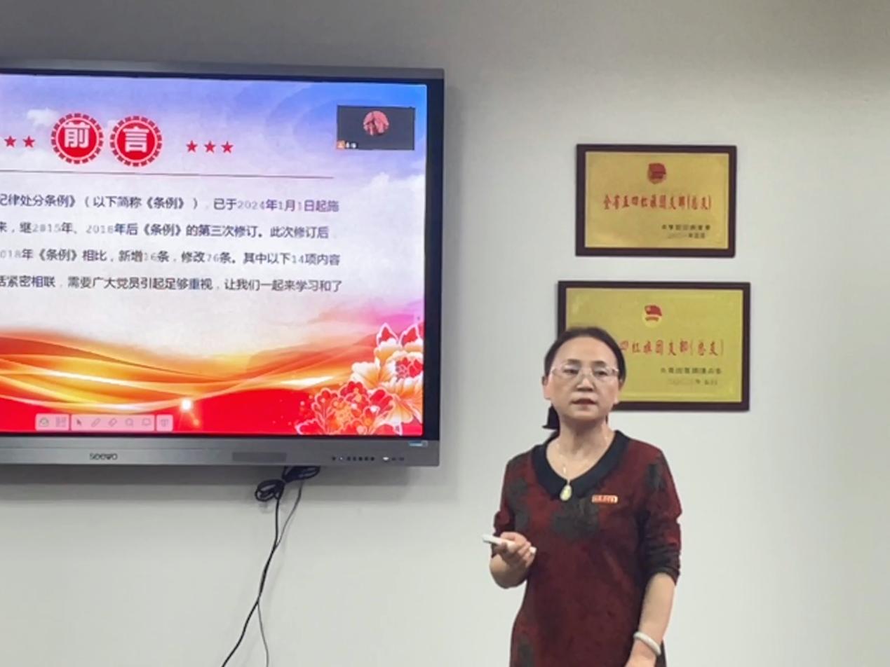 党课上,李莉结合高校的教育教学工作实际,深入浅出地对《条例》修订的内容、意义、主旨要义等方面进行了全面的解读。她指出,党的纪律是党的生命线,是全体党员必须遵守的行为规范,学习《条例》,不仅是对党员个人行为的约束,更是对全党纪律意识的提升。