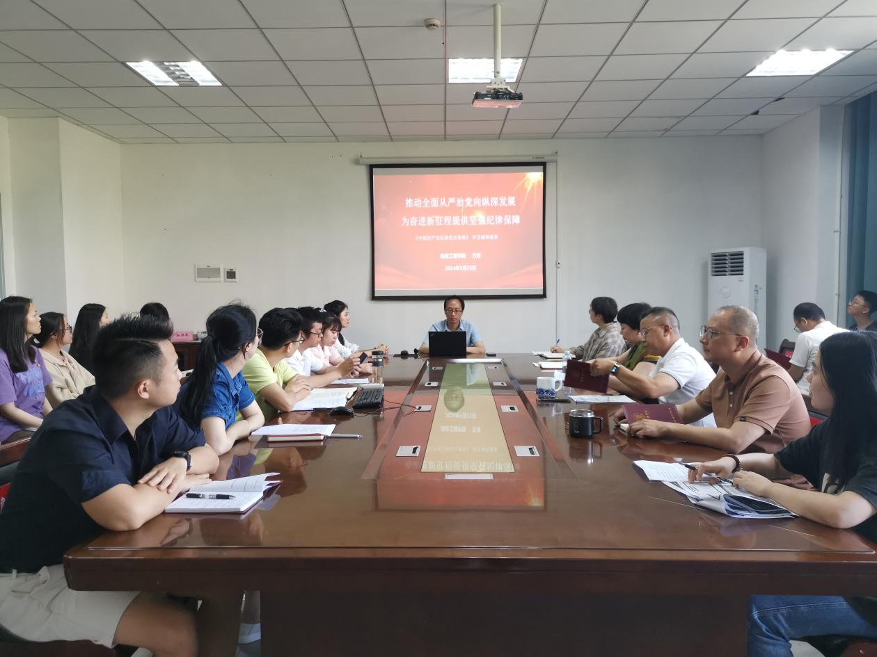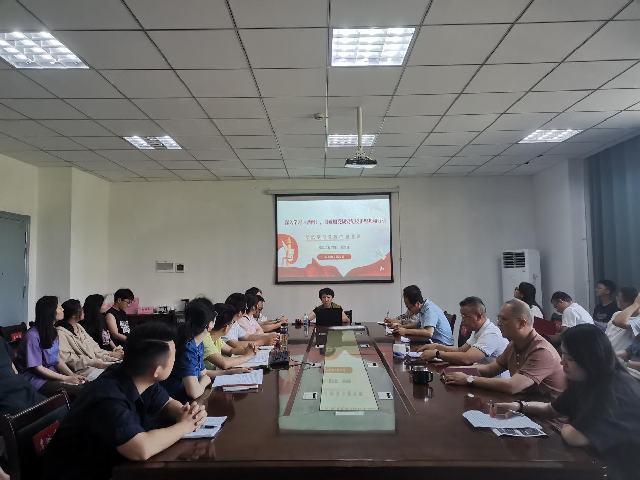 信息工程学院党委书记练缤艳在读书班开班式中指出,党的纪律是党的“生命线”,是管党治党的“戒尺”,是干事创业的“风向标”,是带电的“高压线”。随后,练缤艳以《深入学习< 条例>,自觉用党纪党规校正思想和行动》为题,从深刻认识修订《条例》的背景意义、新《条例》的突出特点、用党纪党规校正思想和行动三个方面,对《条例》修订的主要内容、特点和意义等方面进行了详细解读。