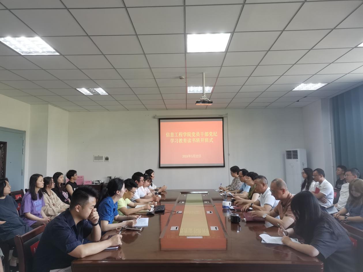 (本网讯:文|江姗/图詹冰清、徐周玉)为深入学习贯彻习近平总书记关于加强党的纪律教育的重要论述,认真学习新修订的《中国共产党纪律处分条例》(以下简称《条例》),推动党纪学习教育入脑入心走深走实,5月22日-24日,信息工程学院举办党纪学习教育读书班。