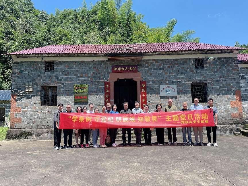 (本网讯:赵云君)为庆祝中国共产党成立103周年,进一步推进党纪学习教育走深走实,激励支部党员践行初心使命,坚定理想信念,7月5日,党政办党支部在昌江区荷塘红色书院开展“学条例 守党纪明底线知敬畏”主题党日,党委委员、副校长方漫以普通党员身份参加。