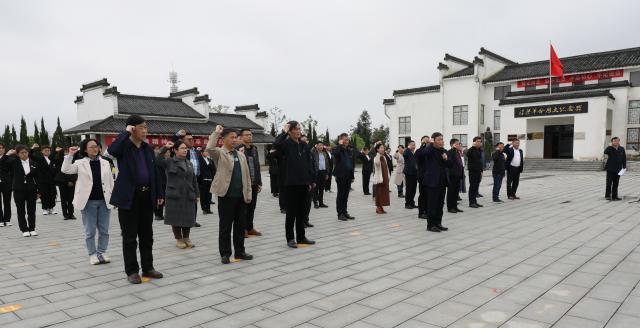 全体师生党员在李良智领誓下重温入党誓词。随后缓缓绕行纪念碑一周,瞻仰革命烈士纪念碑。