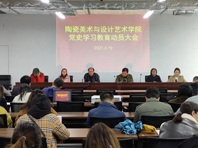 会议强调,要突出学党史、悟思想、办实事、开新局,注重融入日常、抓在经常,面向全体党员、师生,积极推动党史学习教育进班级、进课堂、进寝室。结合艺术学院学科专业特点,在全院师生中积极开展书画、陶瓷艺术、摄影、文学作品等创作活动,充分展示中国共产党百年光辉历程和伟大功绩,充分展示学校四十余年的办学历程和成绩,进一步彰显陶瓷文化、陶瓷艺术魅力、弘扬革命精神和校训精神。