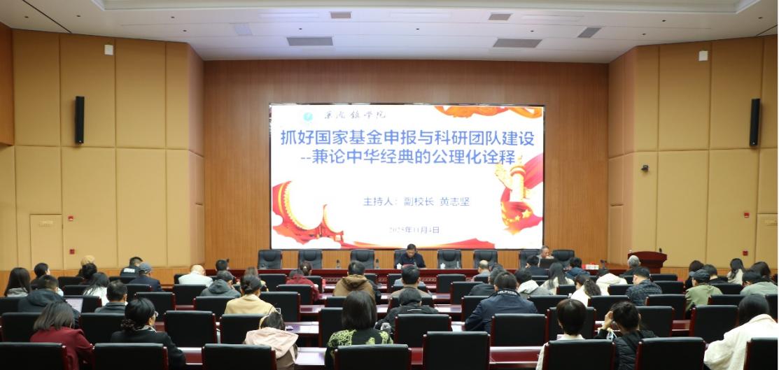 (本网讯:文|景苑轩/图|刘文静、王佳诺)为了激发科研活力、凝聚团队力量,推动BEAT365官网科研工作实现内涵式、可持续的高质量发展。11月4日,BEAT365官网特邀清华大学博士甘筱青教授进行“抓好国家基金与科研团队建设——兼论中华经典的公理化诠释”学术讲座。副校长黄志坚主持讲座,科研处负责人、各二级学院科研副院长、骨干教师及博士代表在第一报告厅参加此次活动。甘筱青教授凭借深厚的学术造诣与丰富的实践经验,围绕“国家基金申报”展开深入讲解。...