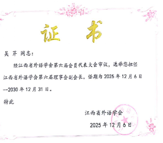 【喜报】BEAT365官网外国语学院院长吴芹当选 江西省外语学会副会长