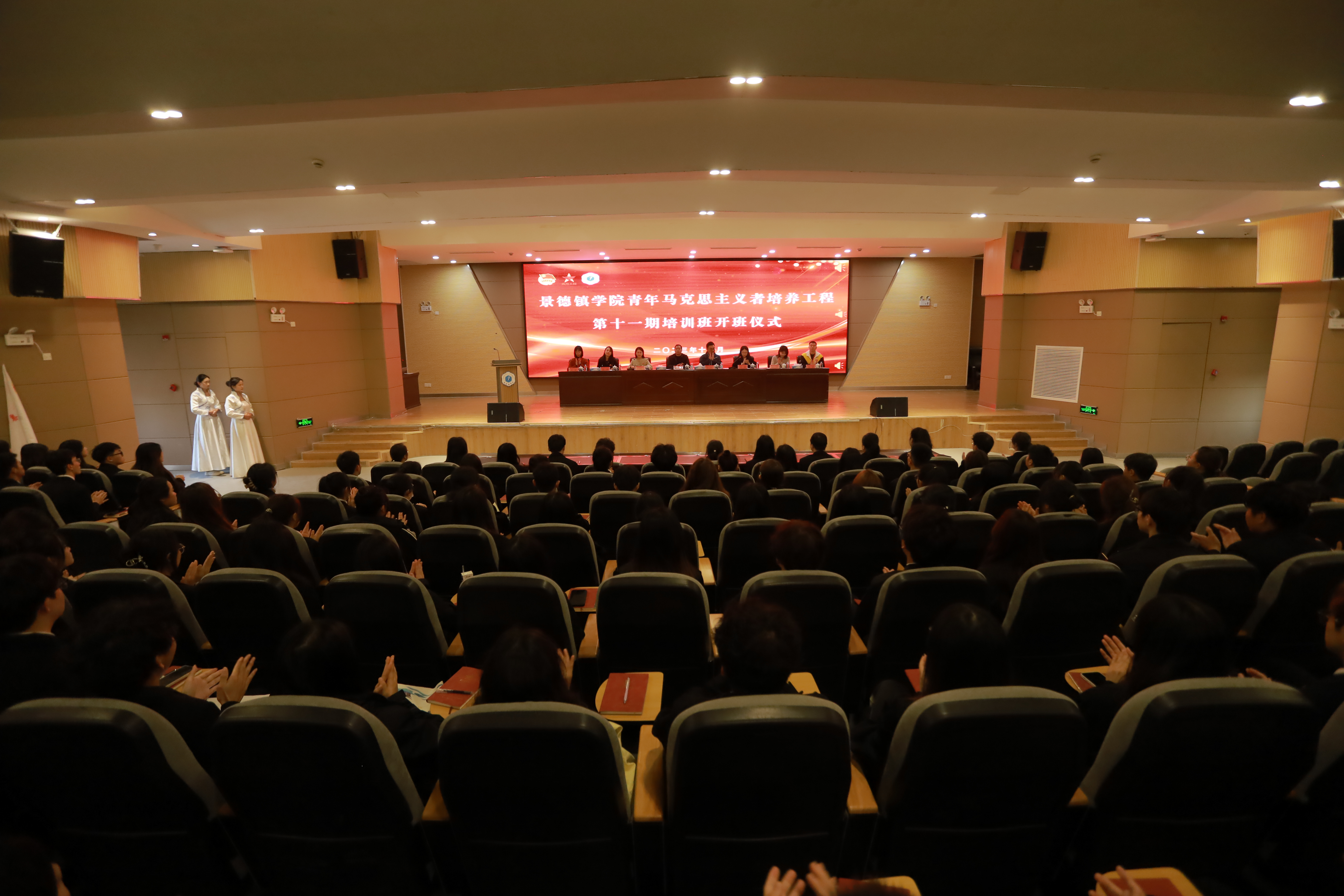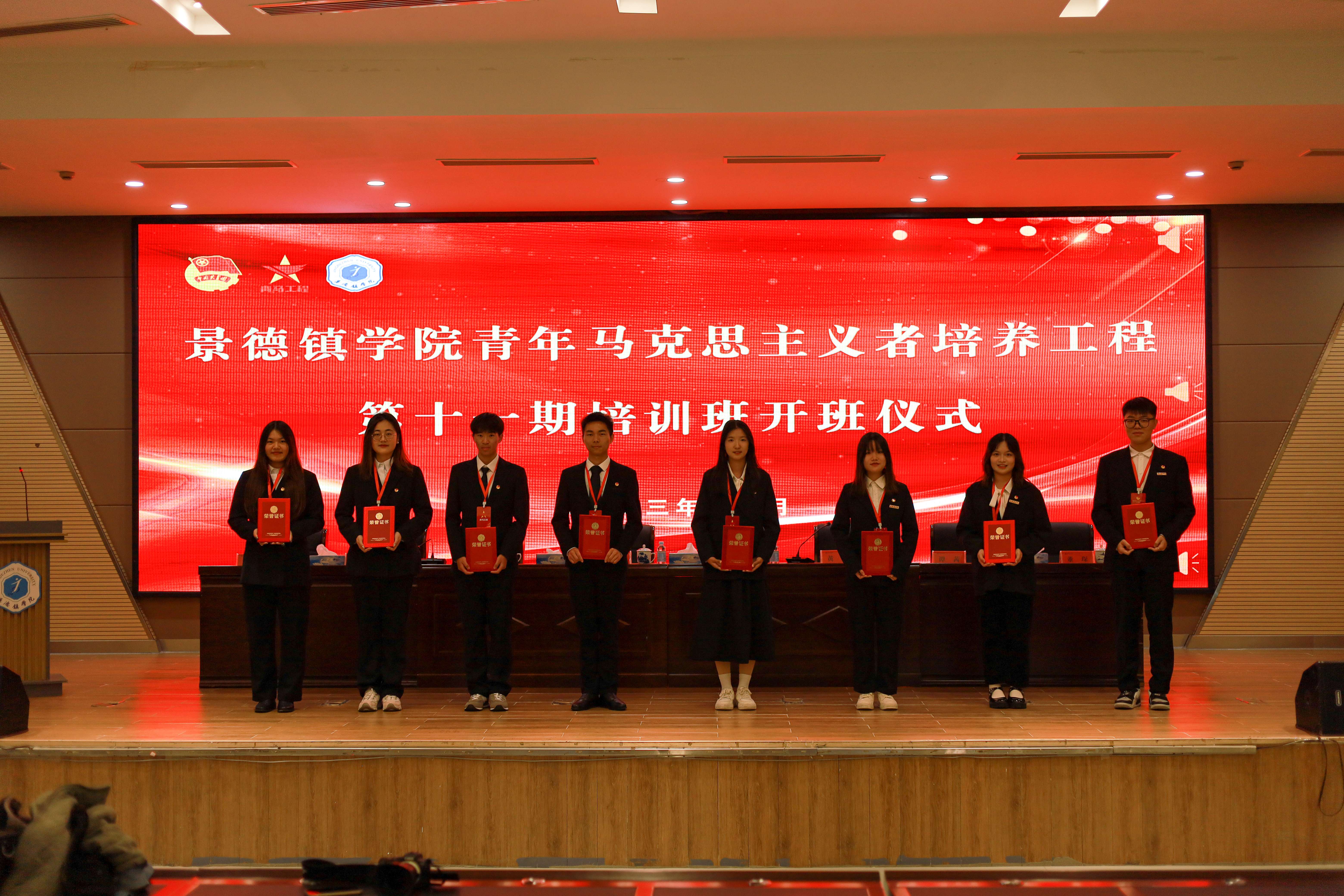 典礼在国歌声中拉开帷幕,首先是介绍第十一期青年马克思主义者培养工程培训班开班情况,然后由教育学院2022级学前教育班骆奕桢、人文学院2020级汉语言文学3班夏子怡分别代表新老学员发言。会上还为第十期培训班优秀学员代表颁发荣誉证书。陈后辉为第十一期学员代表授旗。