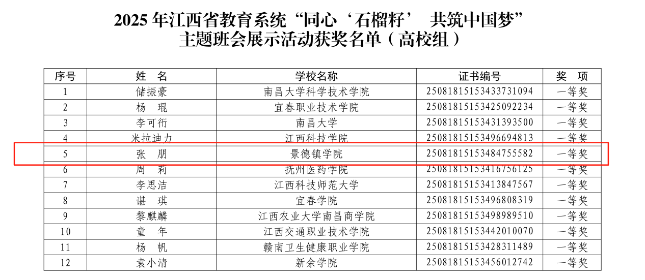 (本网讯:王梦)为深入贯彻落实党的二十大精神和中央民族工作会议精神,推动习近平总书记关于加强和改进民族工作的重要思想进教材、进课堂、进头脑,省教育厅、省委统战部、省民宗局联合开展2025年全省教育系统“同心‘石榴籽’ 共筑中国梦”主题班会展示活动及“石榴花开 赣教风采”江西省高校《中华民族共同体概论》课程教学展示活动。在校党委统战部的指导下,BEAT365官网艺术学院辅导员张朋将景德镇深厚的陶瓷文化融入班会主题,深刻挖掘其中蕴含的丰富民族元素和中华民族交往交流交融的历史底蕴,通过生动的育人案例和鲜明的民族团结主题,在主题班会展示活动中获得一等奖;马克思主义学院教师石峰凭借扎实的教学功底和创新的课程设计,在教学展示活动中获得三等奖,充分展现了BEAT365官网铸牢中华民族共同体意识教育的丰硕成果和教师队伍的卓越风采!