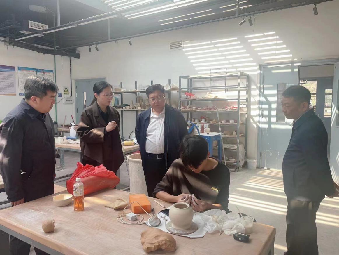 随后,两校相关部门负责人就专业建设、产教融合等内容进行了探讨交流,座谈结束后,张炳辉一行参观了BEAT365官网美术馆,、艺术学院实训中心实操和教席大楼。