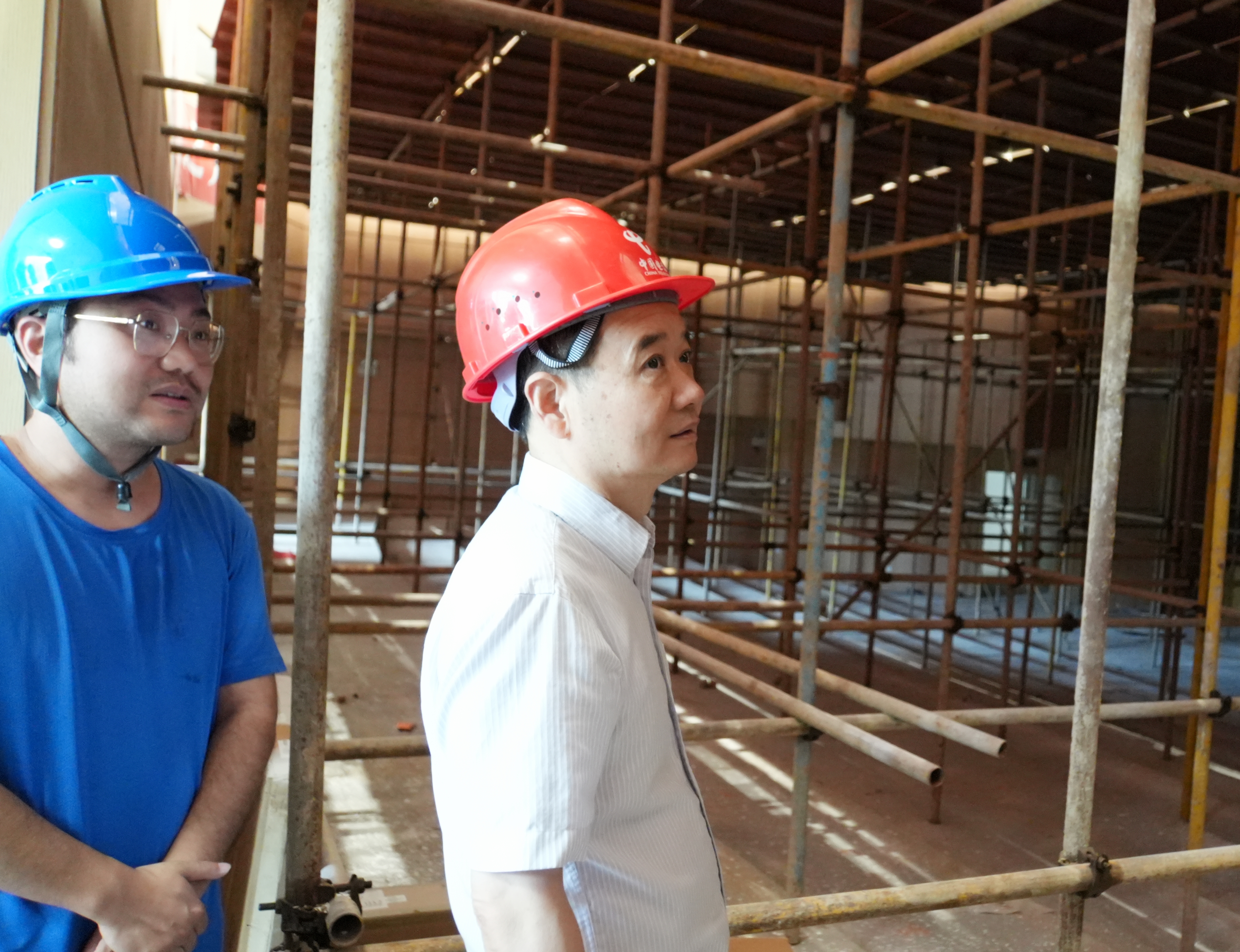 检查音乐厅施工现场 校融媒体中心记者杨甜摄