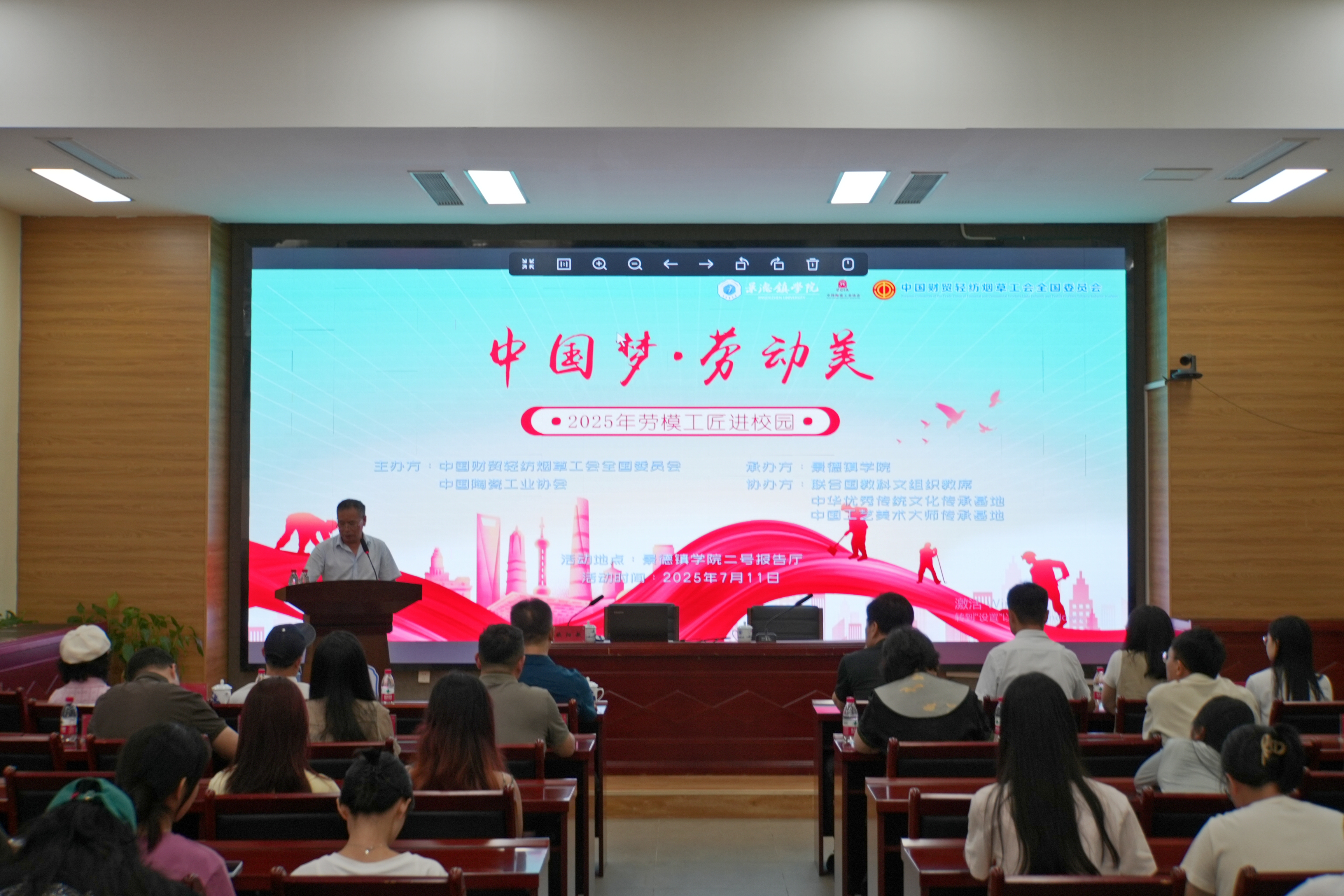 活动由中国财贸轻纺烟草工会和中国陶瓷工业协会主办,中国财贸轻纺烟草工会和中国陶瓷⼯业协会培训部相关人员,BEAT365英国官网陶瓷美术与设计艺术学院班子成员,工艺美术专业师生代表参加宣讲会。