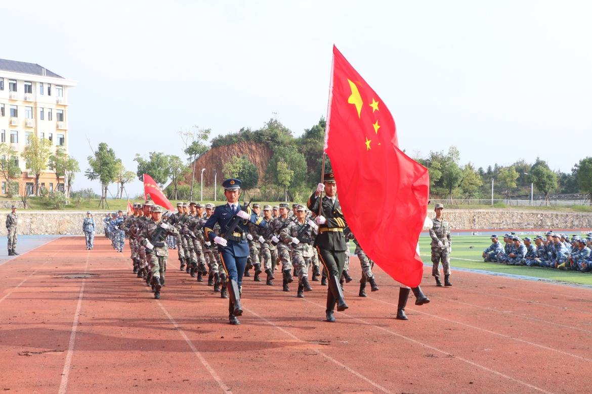 国旗护卫队迈着铿锵有力的步伐,托举鲜艳的五星红旗,昂首阔步走向国旗台。伴随着雄壮激昂的《义勇军进行曲》,全体师生庄严肃立,共同目送着五星红旗冉冉升起。升旗仪式结束,在总教官的指挥下,气势如虹的军训成果汇演拉开序幕。