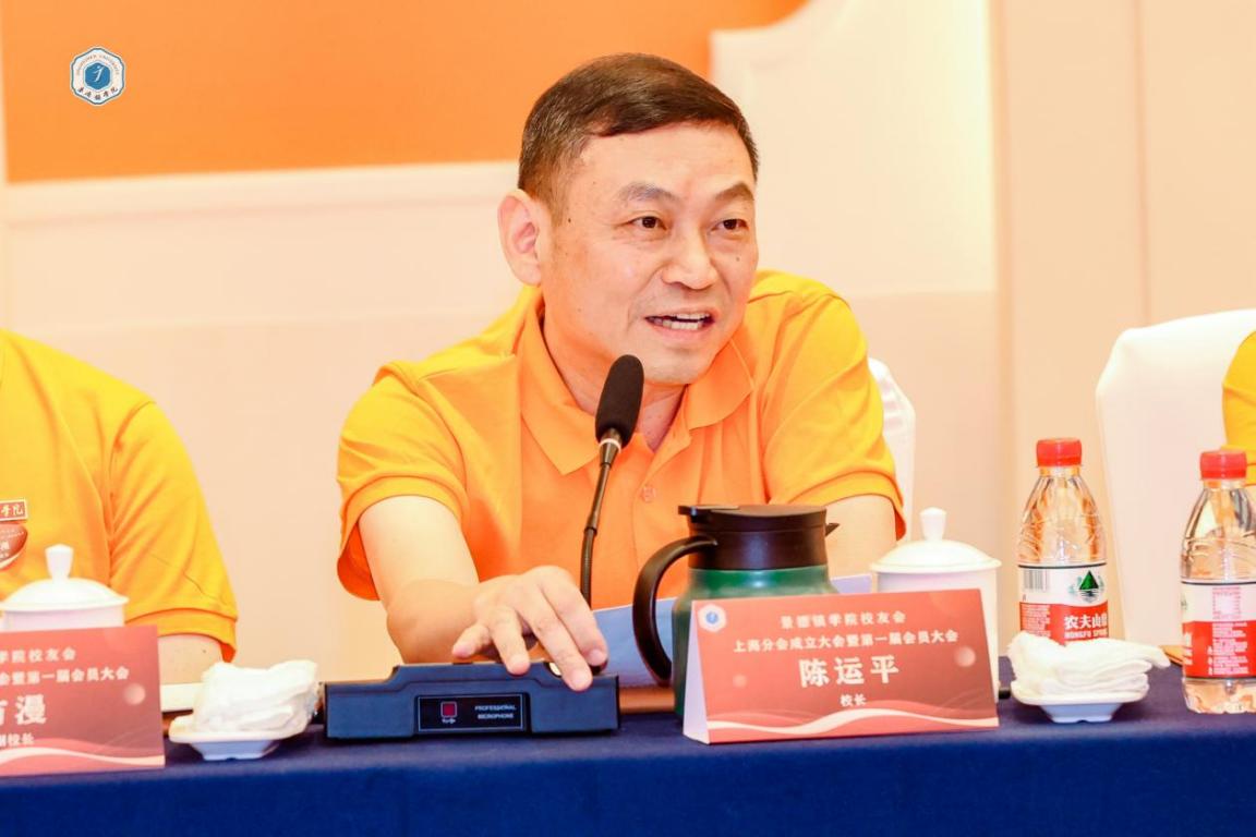 陈运平在致辞中向广大校友表达了感动和感谢之情。他指出,在座从1984级到2017级的校友们,先后经历和见证了学校的发展历程,为学校的发展贡献了青春力量,同时在上海的各行各业中奋勇争先,建功立业,用实际行动诠释了“自强不息、泽土惠民”的景院精神,母校为之感动。