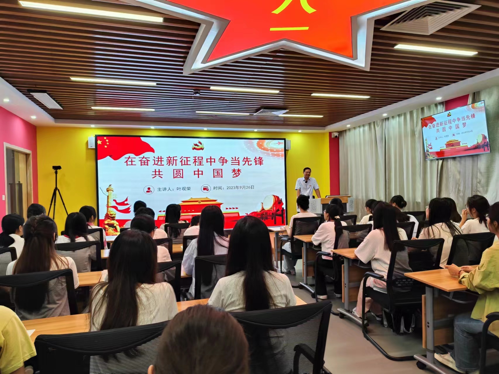 叶观荣指出,习近平总书记多次对青年的地位作用作出了“先锋”的概括、提出了“先锋”的要求,这是党对青年的高度肯定,更是党对青年的殷切期待。他表示,同学们要以“先锋青年”为目标,要争做具有远见卓识、政治信仰的青年,要坚定政治理想,做马克思主义的坚定信仰者、积极传播者、模范践行者;要争做敢于斗争、不怕牺牲的青年,弘扬斗争精神,继承和发扬老一辈革命家不畏强敌、血战到底的英雄气概,以逢山开路遇水搭桥的勇气不断攻坚克难,提升自己的能力和本领;要争做胸怀坦荡、忠诚于党的青年,既充满朝气、拥有梦想,又敢于思考、勇于挑战,珍惜时代,担负起时代的使命,在担当中历练,在尽责中成长,在不断接受新鲜事物的过程中解锁新技能、迎接新的挑战;要争做不畏艰难、脚踏实地的青年,刻苦学习、加强历练、增长本领,既要向书本学习,又要向实践学习,踩着新时代的鼓点,勇做新时代的弄潮儿,努力为实现中国梦贡献自己的力量。