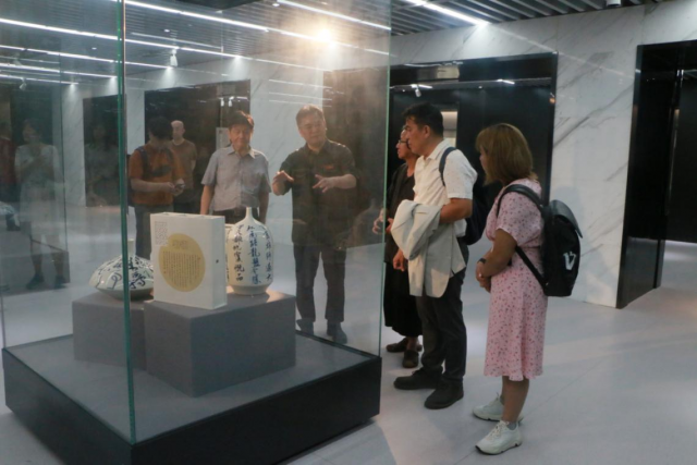 访校中,塞尚一行人先行参观了学校美术馆,当参观到陶瓷书法作品展厅时,塞尚对这种艺术表现形式十分欣赏与认可,方漫表示这种艺术表现形式从古代一直传承到现在,塞尚对中国这种创新精神与传承精神表示赞许。