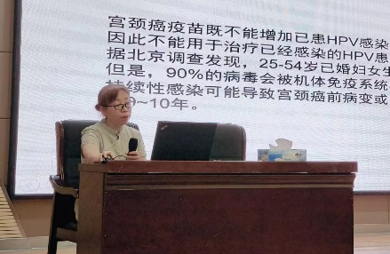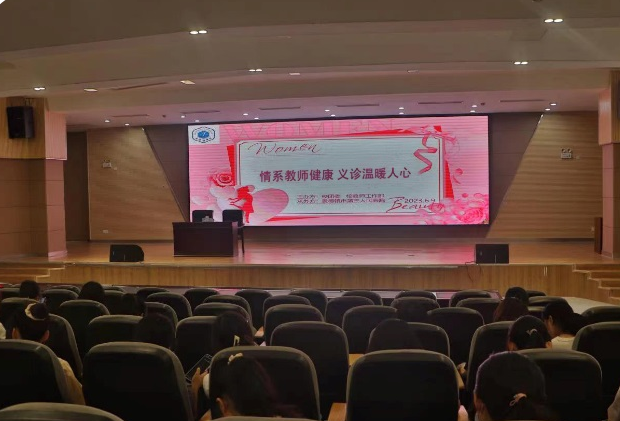 (本网讯:胡治宇)为切实做好人才服务工作,6月9日为世界女性生殖健康日,校团委和教师工作部开展“情系教师健康义诊温暖人心”健康送教师公益活动,邀请了景德镇市第三人民医院妇产科刘筱燕副主任医师来校在图文报告厅作健康教育宣讲,然后在校医院坐诊,为众多前来咨询的教师提供免费体检并答疑解惑,进一步提高教师的健康知识水平,增强体检意识。