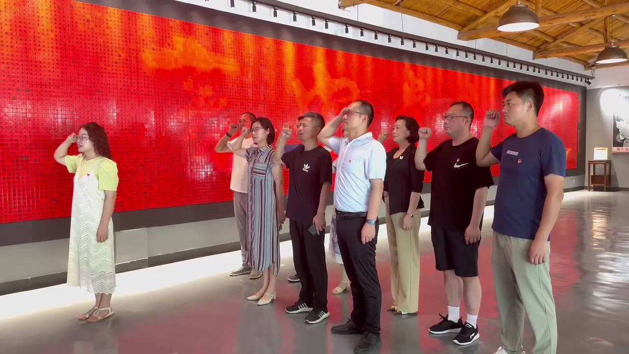 在红色巨幅瓷板画《共产党宣言》下,全体党员在赵云君同志的带领下,重温入党誓词,大家一起高举右手,紧握拳头,面对鲜红的党旗,庄严宣誓:“我志愿加入中国共产党……随时准备为党和人民牺牲一切,永不叛党。”通过重温入党誓词,坚定政治信仰,增强政治自信,时时刻刻牢记自己的身份,始终做到政治信仰不变、政治立场不移、政治方向不偏,永葆忠于党、忠于国家、忠于人民的政治本色。