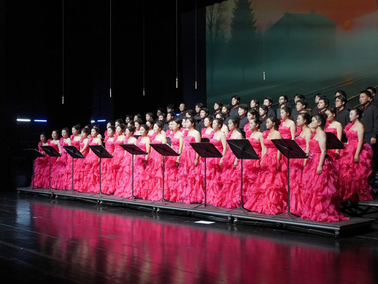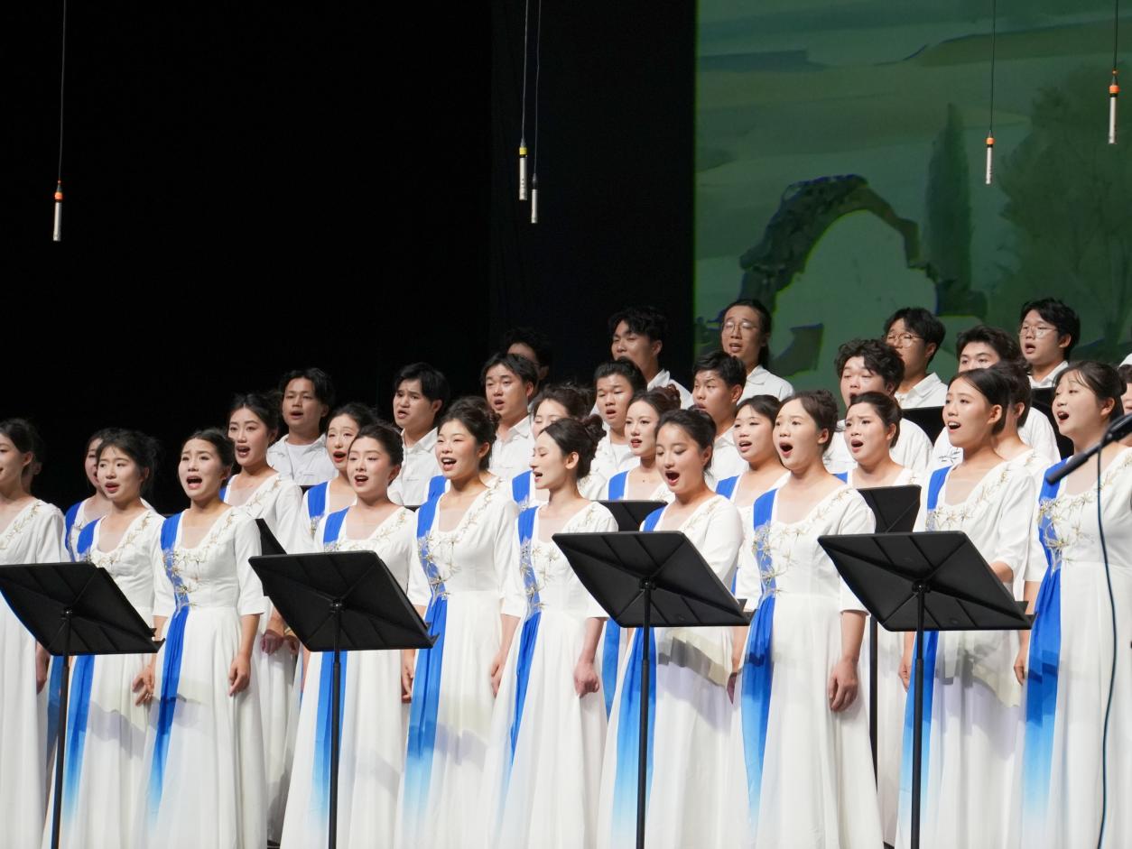 旋律响起,观众们沉浸在合唱团精彩的演绎当中,热烈的掌声萦绕全场。现场的灯光布置也别具匠心,配合着音乐的节奏和情感变化,营造出或古朴典雅、或激情澎湃的氛围,进一步增强了演出的感染力。