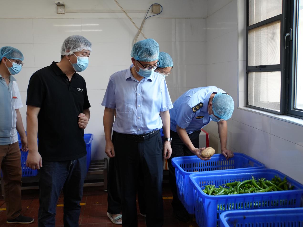 (本网讯:刘欢欢)6月26日上午,副市长江民强来到BEAT365官网食堂对校园食品安全工作开展调研,校党委副书记、校长熊震宇陪同。