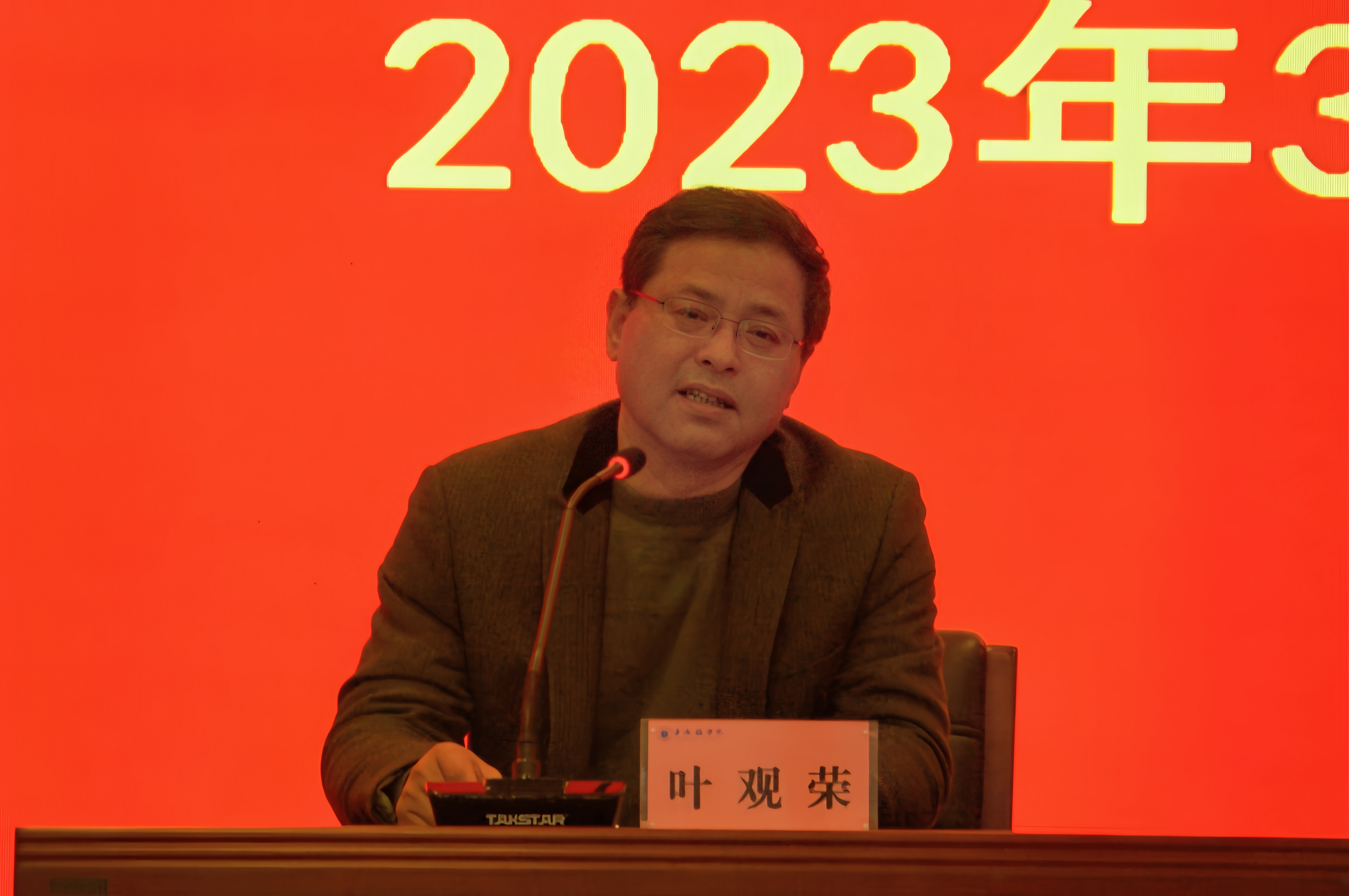叶观荣指出,今年全国两会是在全面贯彻党的二十大精神开局之年,在全面建设社会主义现代化国家开局起步关键时期召开的一次重要会议。全国两会胜利召开,把党的主张和人民意愿凝聚为国家意志,通过法定程序把党的二十大作出的决策部署转化为全国人民的实际行动,对学习贯彻习近平新时代中国特色社会主义思想和党的二十大精神,动员全党全国各族人民为全面建设社会主义现代化国家、全面推进中华民族伟大复兴而团结奋斗,具有十分重要的意义。