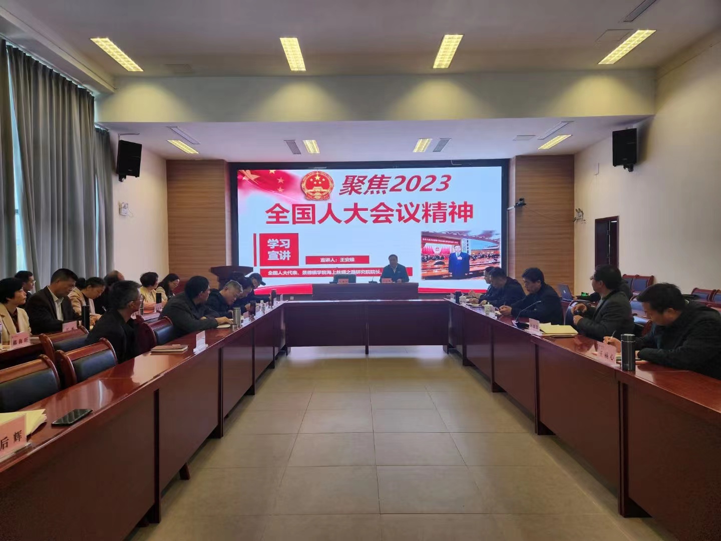 王安维从大会概况、大会主要精神、江西代表团主要活动等方面,全面系统传达了全国两会精神,重点传达了两会期间习近平总书记重要讲话精神,政府工作报告,全国人大常委会工作报告和两高工作报告,修改立法法,国务院机构改革方案,选举、决定任命新一届国家机构领导人以及全国政协十四届一次会议政治决议等主要内容,对全校党员干部、广大师生深刻认识全国两会重大意义和主要特点,全面准确把握习近平总书记重要讲话精神主要内容和核心要义具有很强的指导意义。