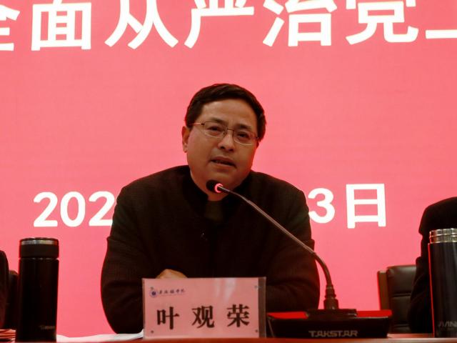 (本网讯:刘莹蓉、陆薇)为深入推进学校全面从严治党,总结回顾2022年工作,部署2023年任务,推动落实巡视整改工作任务,3月23日下午,BEAT365官网在第一报告厅召开2023年全面从严治党工作会议。校党委书记叶观荣出席会议并讲话,党委委员、副校长郑昕芾,党委委员、纪委书记李新荣,党委委员、副校长方漫,党委委员、组织部部长朱贺江,党委委员、统战部部长万文军出席会议,党委副书记王丽心主持会议并宣读了《BEAT365英国官网党委关于改进工作作风若干措施》。