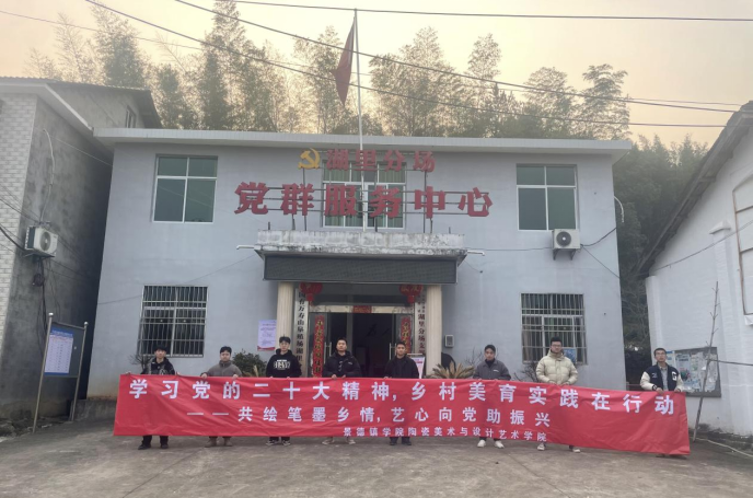 (本网讯:图|李雪红/文|艾诗祺)为深入贯彻落实党的二十大精神,以美育之笔共绘乡村振兴画卷。2月24日至26日,陶瓷美术与设计艺术学院前往浮梁县蛟潭镇湖里分场开展“学习党的二十大精神,乡村美育实践在行动”社会实践活动,陶瓷美术与设计艺术学院党委副书记胡文毅,蛟潭镇党委副书记吴俊君、党委委员朱同、湖里分场村委书记姚先瑞参加活动。