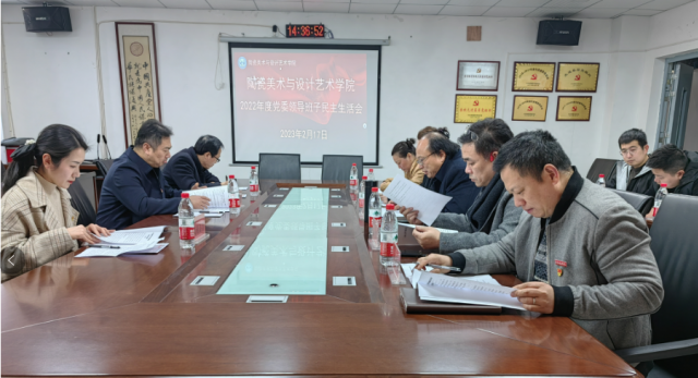 (本网讯:张亚娟)2月17日下午,陶瓷美术与设计艺术学院2022年度党委领导班子民主生活会在艺术大楼四楼党员活动室召开。校党委委员、副校长方漫同志到会指导,艺术学院党委书记赵雪政主持会议。