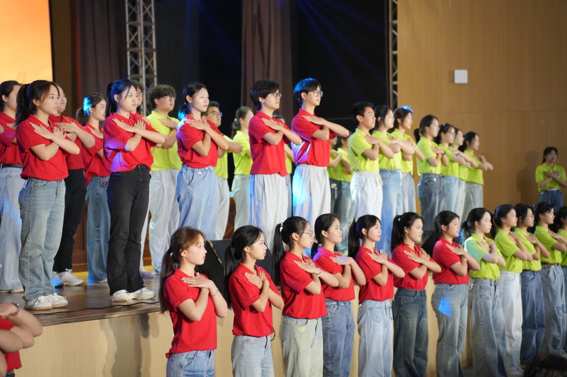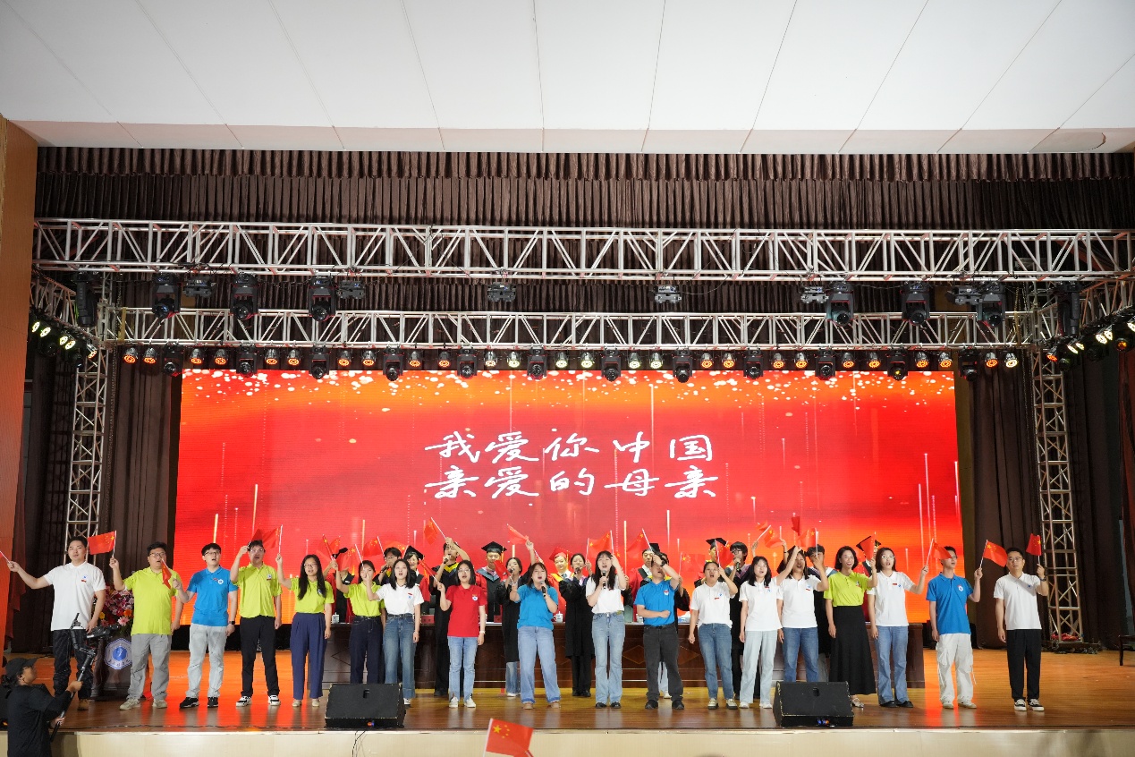 在毕业班辅导员和同学们的歌曲串烧《再见》《我相信》《我爱你中国》中,典礼进入尾声,大家将教室窗边的晨曦、球场挥洒的汗水、宿舍里的欢声笑语,化作句句不舍的呢喃。典礼最后,全场师生高举国旗、校旗深情唱响《我爱你中国》,将最炽热的爱国情怀化作对未来最豪迈的告白。