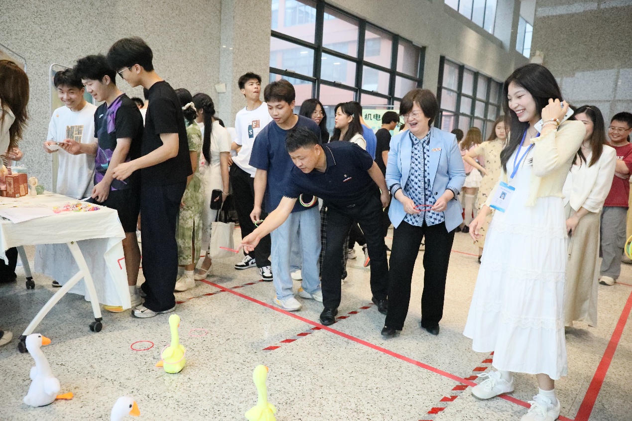 启动仪式结束后,周清平与在场的百余名师生共同开启心理游园之旅。活动现场,各二级学院精心布置了各具特色的体验区,包括精彩的舞台表演、心灵驿站解答内心困惑以及各种解压游戏。周清平不时与同学们交流互动,现场气氛热烈而温馨。这种寓教于乐的沉浸式体验,让参与者在活动中释放了压力。