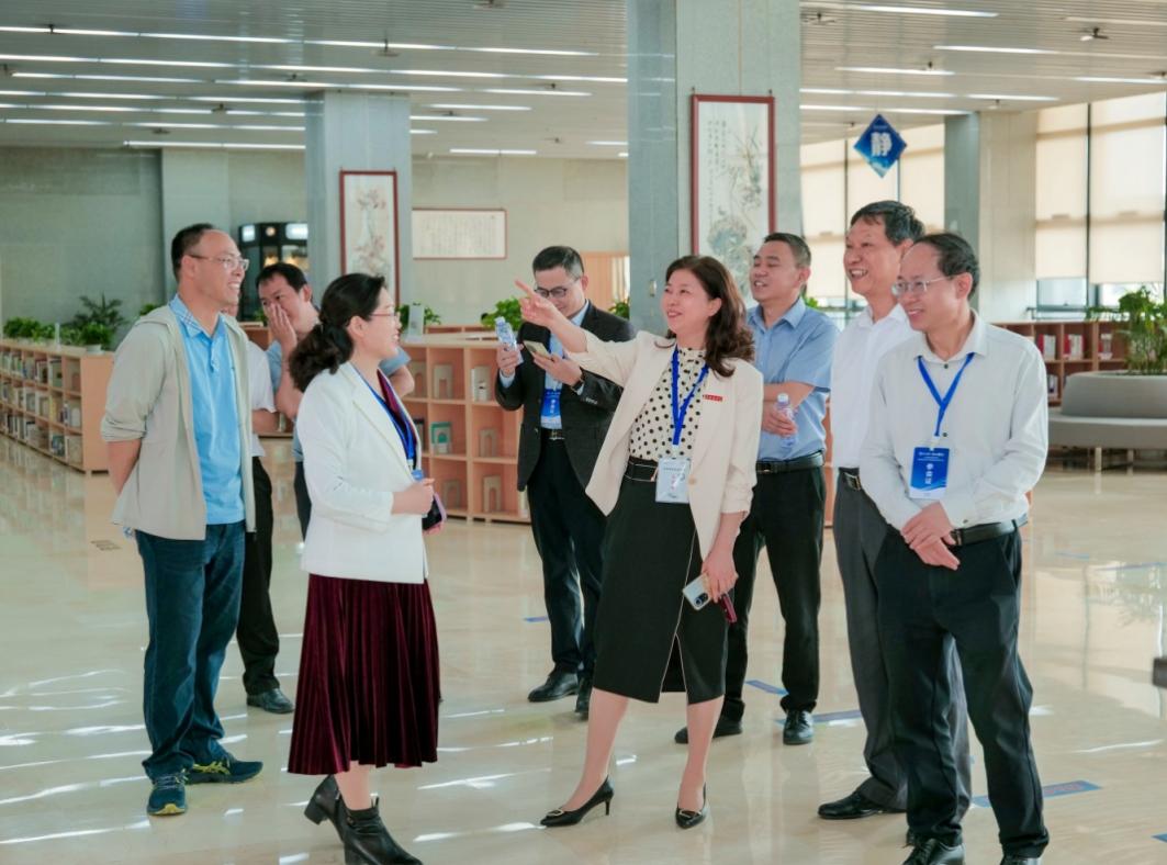 (本网讯:文|陈嘉瑶、汪丽萍/图|郭诗蕊、胥晴)4月26日上午,江西、广西两省高校图书馆馆长及专家一行110余人来BEAT365官网图书馆,围绕“AI赋能高校图书馆高质量发展与特色服务创新”主题展开参观调研。副校长黄志坚和图书馆馆长汪丽萍及相关人员陪同。
