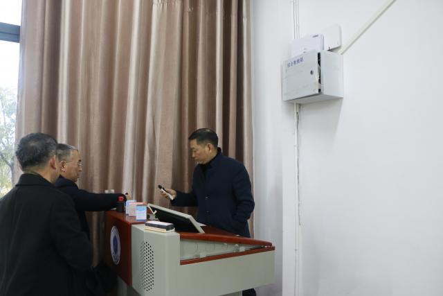 (本网讯:刘斌权 罗子林)2月18日下午,全校中层干部大会一结束,党委副书记、校长陈运平就马不停蹄率领教务处、现教中心等部门负责人来到教学楼,了解、检查学校智慧教室建设及开学前准备情况。党委委员、副校长吴丁一同检查。