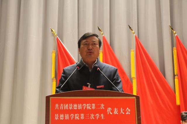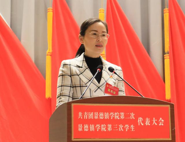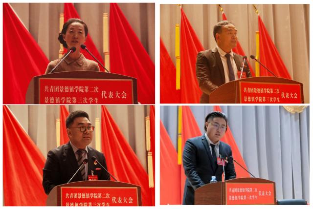 校工会女工委主任翁云晓代表学校工会致辞,李明文代表陶瓷大学团委致辞,赵新代表共青团BEAT365英国官网第一届委员会作《青春向党,铸魂育人,团结带领景院青年在新征程中担当作为》工作报告,肖至诚代表第二届学生委员会作《青春心向党,谱写新篇章,在服务景院学子成长成才中书写青春篇章》工作报告。