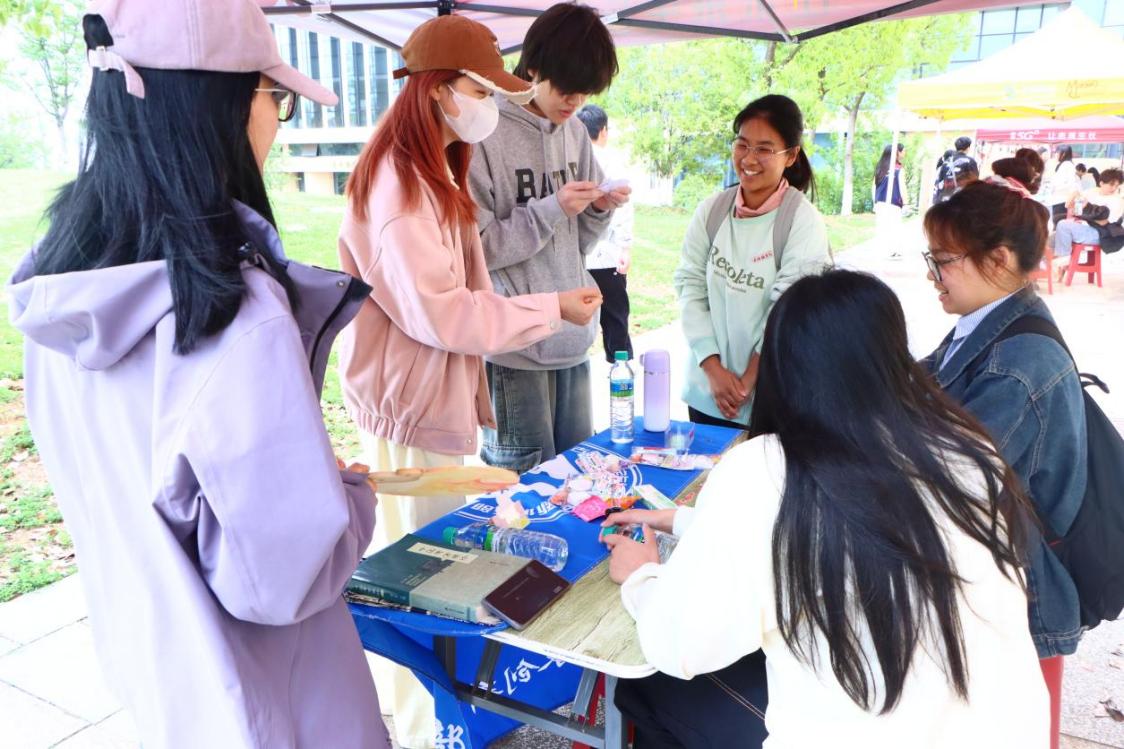 活动精心设计了“探芳蹊”“赏春路”“寻幽道”三条主题游园路径,设置了陶瓷文化、书法篆刻、甲骨识字、手工体验等多元展区,以沉浸式体验带领同学们领略非遗魅力。同学们通过体验传统文化、参与科技知识竞答,收集社团印章,通过集章兑换特色文化周边,感受着这份属于景院学子的春日。