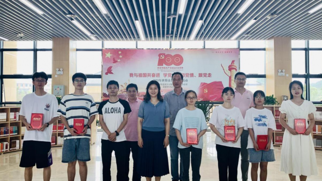(本网讯:顾国庆)自“我与祖国共奋进——学党史、知党情、跟党走”党史学习教育系列活动开展以来,全校师生积极参与,形成了“乐读书、勤读书、会读书”的良好氛围。近日,系列活动之“阅读之星”“征文比赛”颁奖仪式在图书馆二楼大厅举行。近60名学生获得“阅读之星”荣誉称号和“征文比赛”奖励。