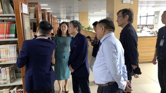 在图书馆负责人汪丽萍的陪同下,李良智走进图书馆藏书区、学生自习区、智能设备区等各服务区域,了解了图书馆的馆社布局、馆藏文献、智能设备使用情况以及图书馆部门设置、人员结构和服务情况等,并和馆内的工作人员和自习的学生们进行了亲切交流。
