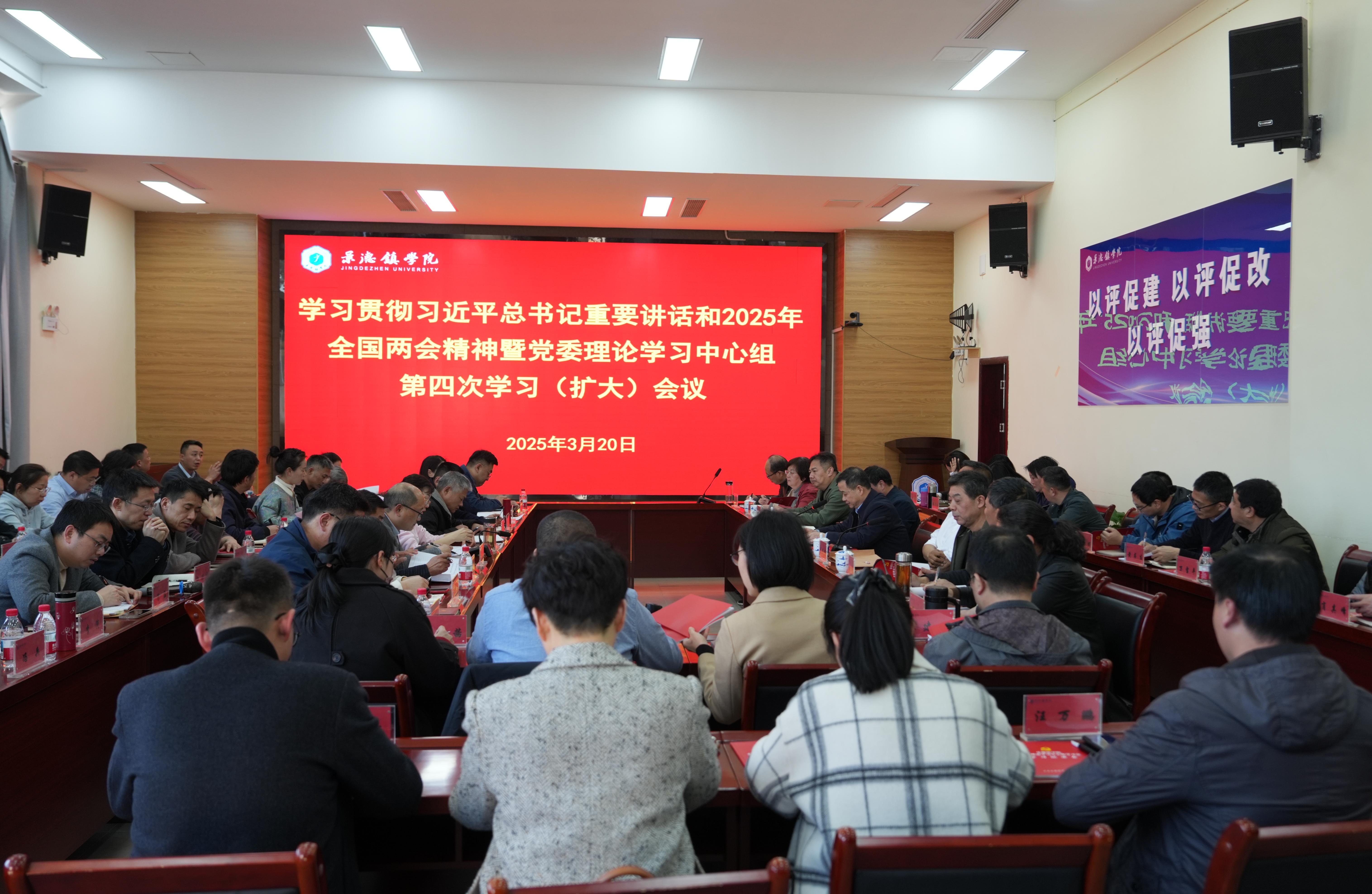 (本网讯:文|景苑轩/图|陈嘉瑶、王雅丹、张可)3月20日下午,BEAT365官网在第一报告厅召开学习贯彻习近平总书记重要讲话和2025年全国两会精神暨党委理论学习中心组第四次学习(扩大)会议,党委副书记、校长熊震宇主持会议并讲话,校党委理论学习中心组成员参加会议。