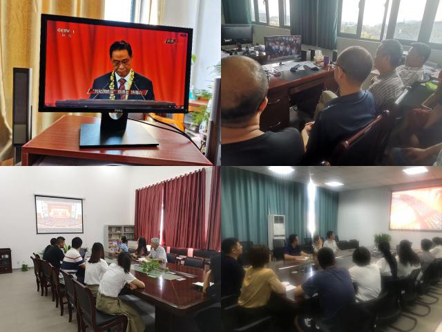 学校党委班子成员在行政楼318会议室集中收看大会直播,认真聆听习近平总书记重要讲话精神。各二级学院党总支分别在学院会议室组织师生收看大会直播。