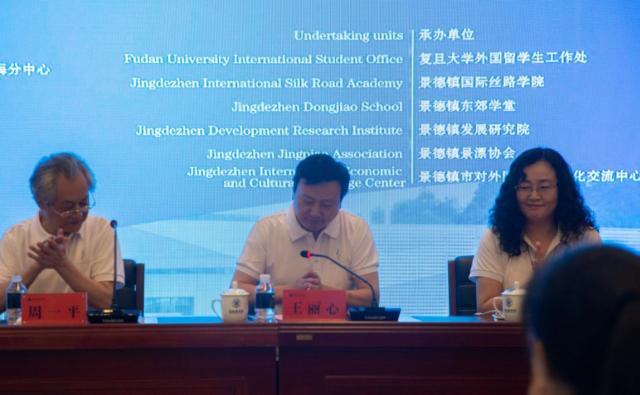 景德镇国际丝路学院院长周一平在仪式上发表了热情洋溢的讲话。他说,学员们第一次来到景德镇,在一周的时间内就领略到了许多中国顶级教授、艺术大师和陶瓷工匠的博学和风采,感受到了昔日景德镇“工匠来八方,器成天下走”的辉煌,也看到了今天万名“景漂”云集瓷都的壮丽景象,还第一次在中国的国器——瓷器上绘制了属于自己的“文化符号”。他对学员们圆满完成暑期研修班的课程而感到由衷的高兴和骄傲,也希望大家要成为对自己国家自强和民族振兴有为的人,做对人类文明进步、世界和平共处与和谐共生有用的人。