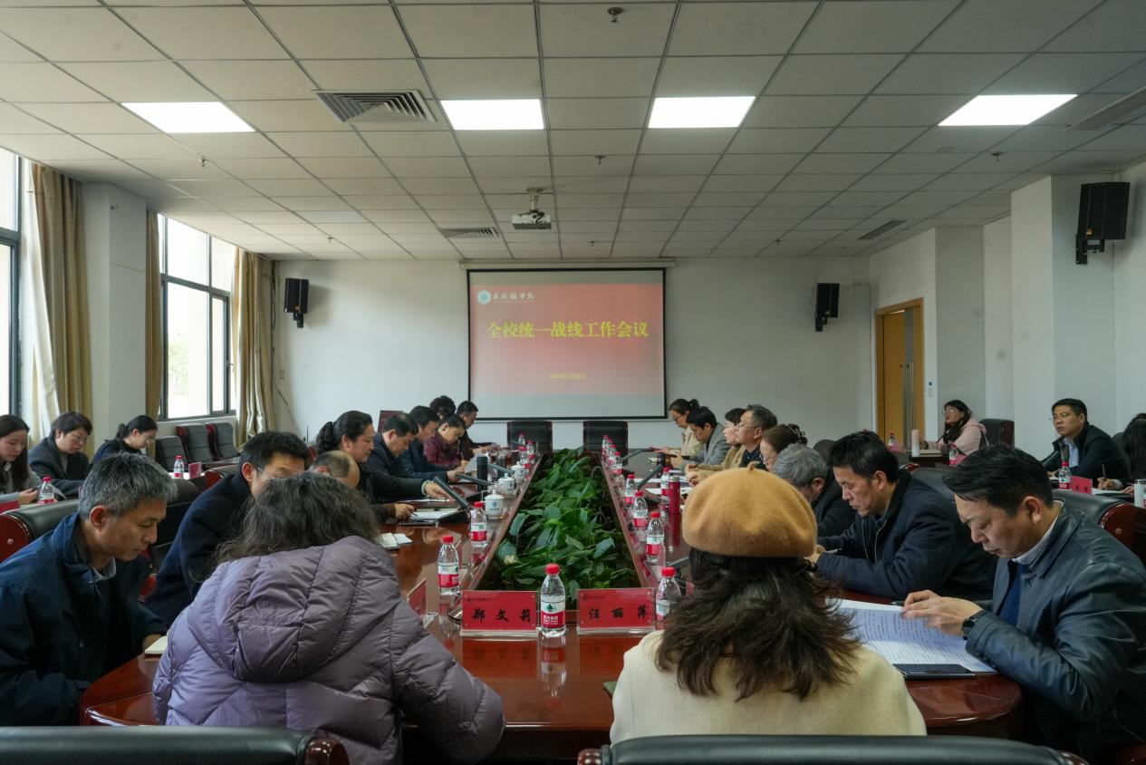 王丽心传达学习了《习近平总书记关于做好新时代党的统一战线工作的重要思想学习读本》以及全国、全省、全市统战部长会议精神。他指出,统一战线是中国共产党的重要法宝,学校各部门、各学院要把学习贯彻习近平总书记关于做好新时代党的统一战线工作的重要思想作为重要政治任务,学深悟透,笃行做实。要加强组织领导,完善工作机制,强化队伍建设,推动学校统战工作高质量发展。