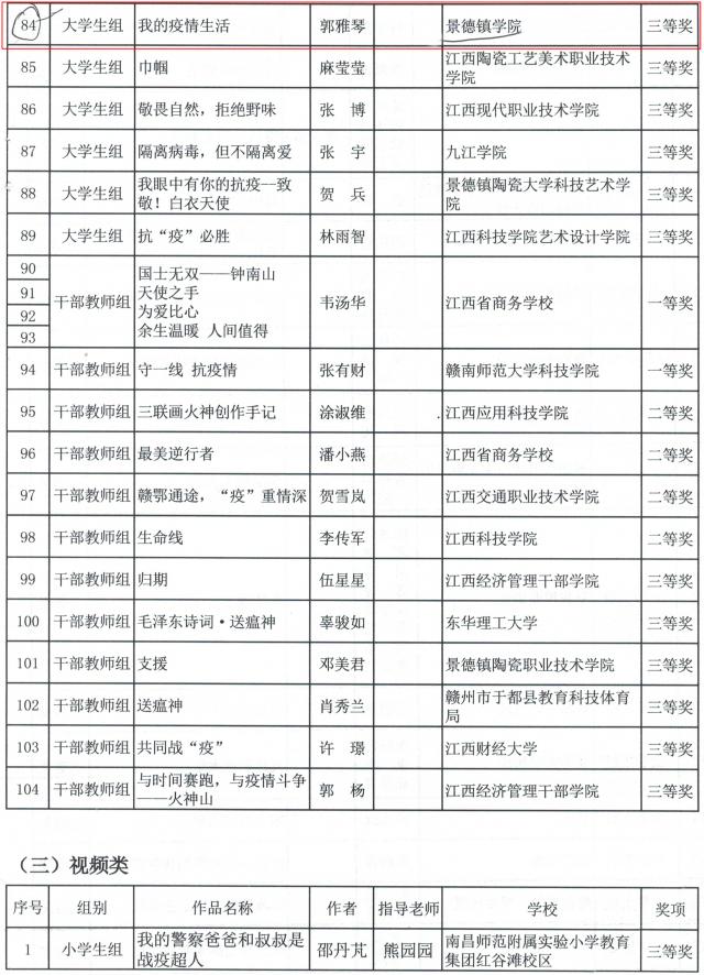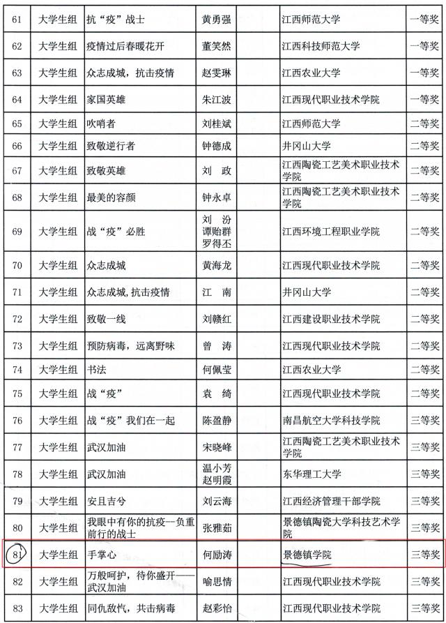 (本网讯:汪万鹏)6月8日,省委教育工委、省教育厅下发《关于公布战“疫”主题征文活动获奖名单的通知》文件,BEAT365官网选送的作品《坚守学生“责任田”,勇做防控“抗疫人”》作者:李婷婷(教育学院教师)荣获干部教师组文章类二等奖;《手掌心》作者:何励涛(艺术学院学生)荣获大学生组绘画类三等奖;《我的疫情生活》作者:郭雅琴(艺术学院学生)荣获大学生组绘画类三等奖。