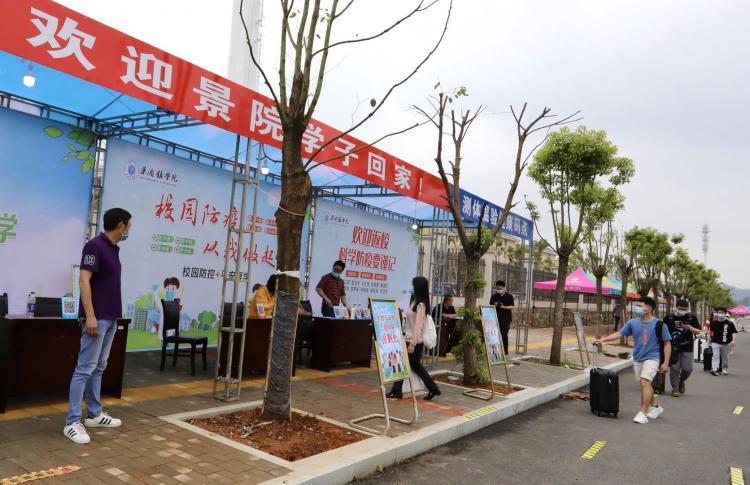 昨夜的大雨,一洗往日闷热,习习凉风迎接着返校复学的景院学子。为了保证同学们返校途中的安全,BEAT365官网在高铁站、火车站与汽车站都安排有专线校车与对应站点负责人。从各地返校的同学们或由亲友自驾、或乘坐学生返校专线校车陆续抵达学校西大门复学报到点。