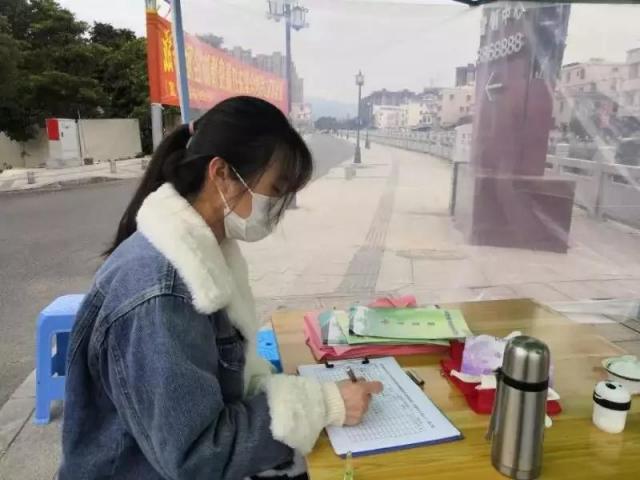 吴莹婷被安排为福建省漳州市漳浦县绥东社区提供志愿服务。每天主要工作就是测量和登记进出人员的体温,规劝想要出门玩耍聚会的人。一天大概工作七八小时。即使是春节,吴莹婷同学依然坚守在防疫志愿岗位。
