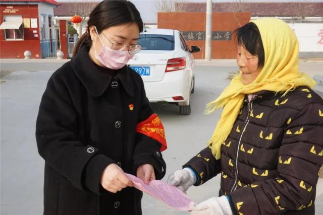 自1月27日起,朱官庄实行封村管理,她与朱官庄村村干部一起在路口轮流值守,重点对进出车辆、行人进行排查、登记。协助村干部统计武汉返乡人员的具体情况,要求他们自行隔离14天并每天上报身体健康状况。多次跟随村干部挨家挨户发放抗击疫情的宣传单、消毒液等,宣传抗疫情知识,并做好村民们的心理疏导工作。