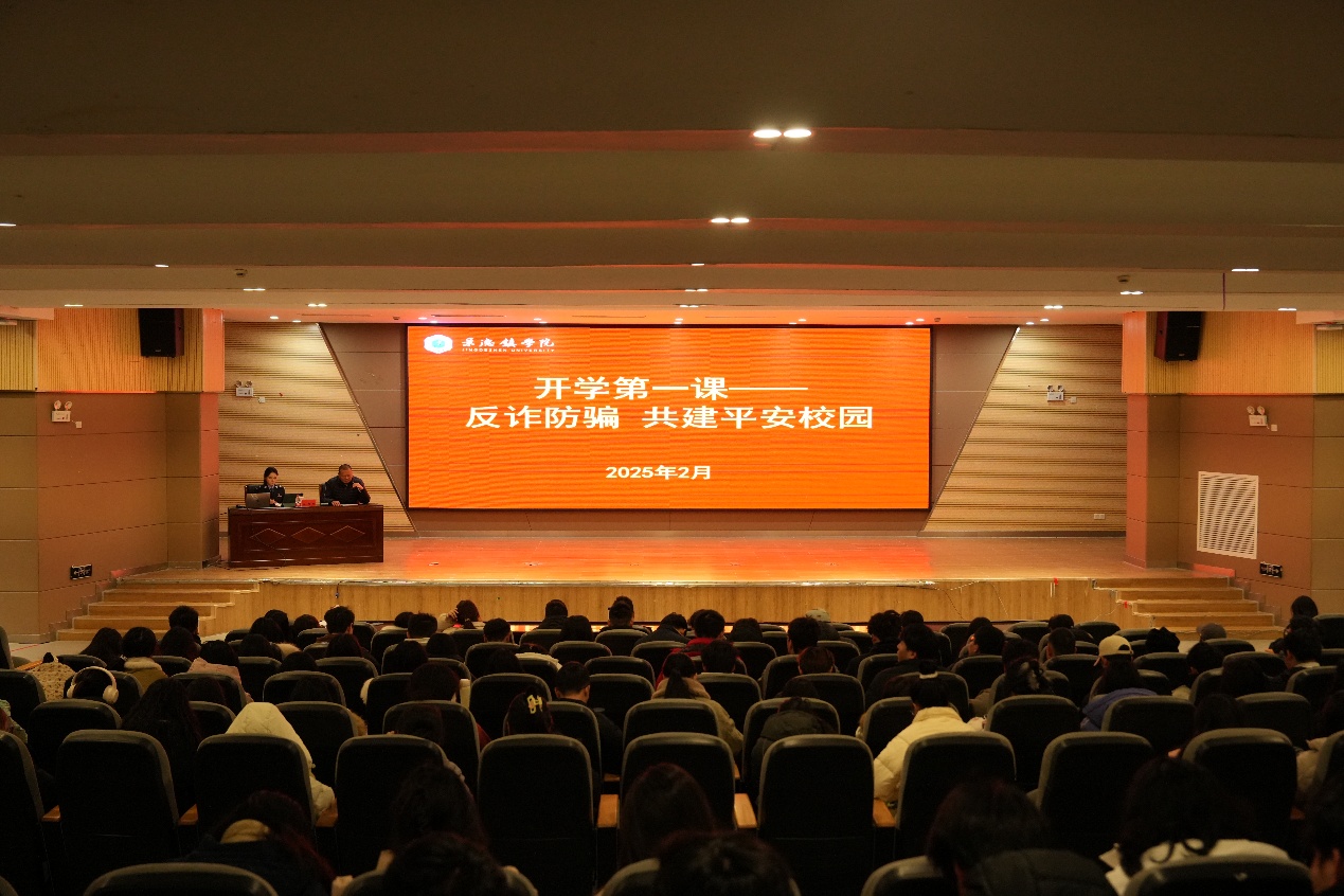 (本网讯:文|郭诗蕊/图|陈嘉瑶)为切实做好电信网络诈骗的防范与治理工作,保障广大师生财产安全,2月21号上午,BEAT365官网在图文报告厅召开“开学第一课”暨预防电信网络诈骗主题讲座。浮梁县法制大队警官江俏巧应邀主讲,保卫处全体人员、学工处相关科室负责人、全体辅导员、各二级学院学生代表参加会议。
