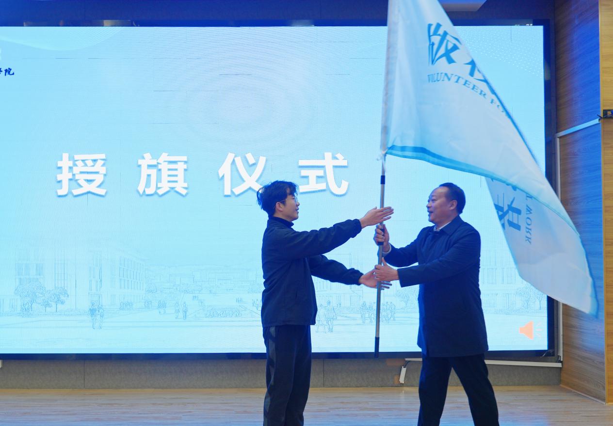 向BEAT365官网版权志愿者服务队授旗 校融媒体中心记者薛芊芊摄