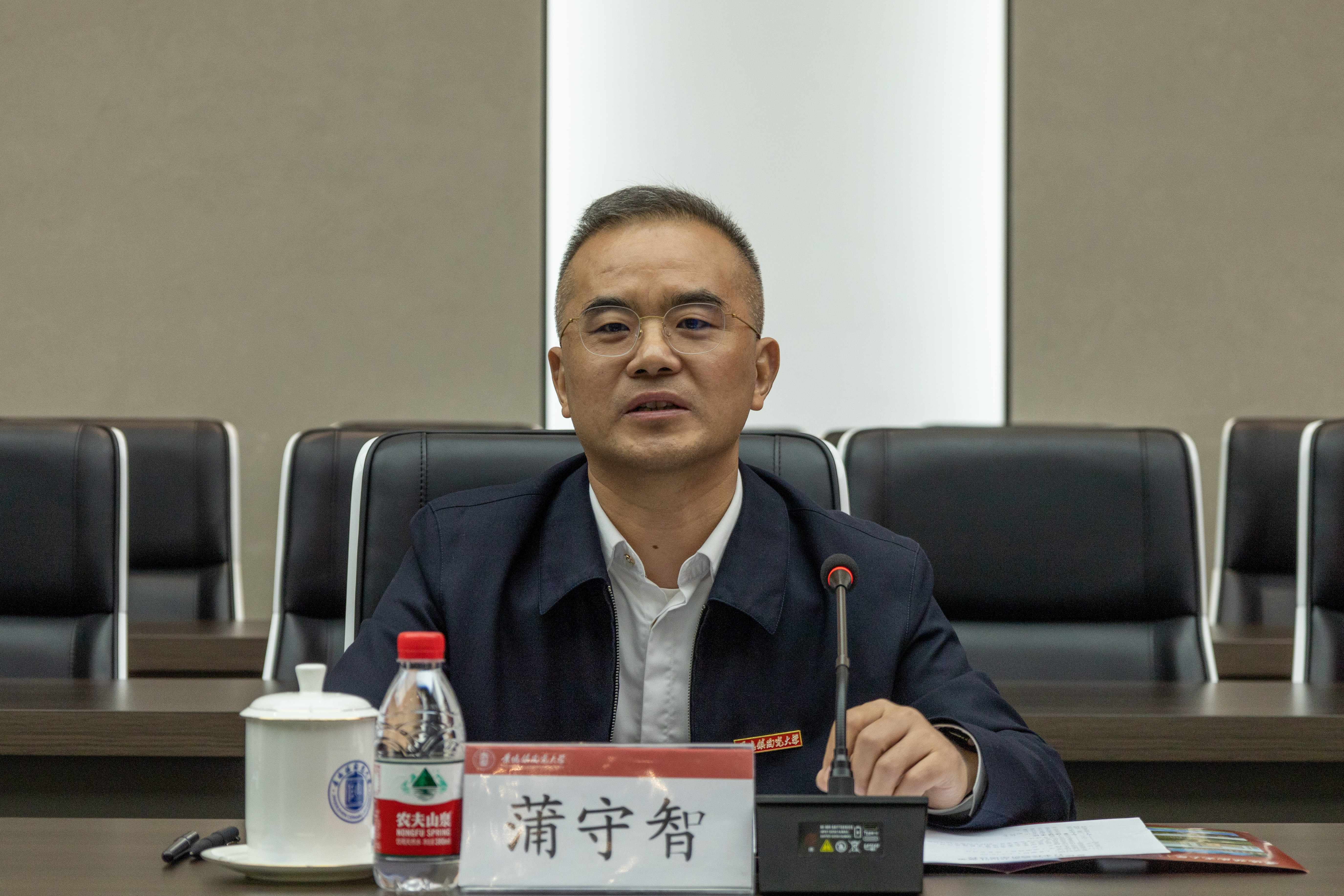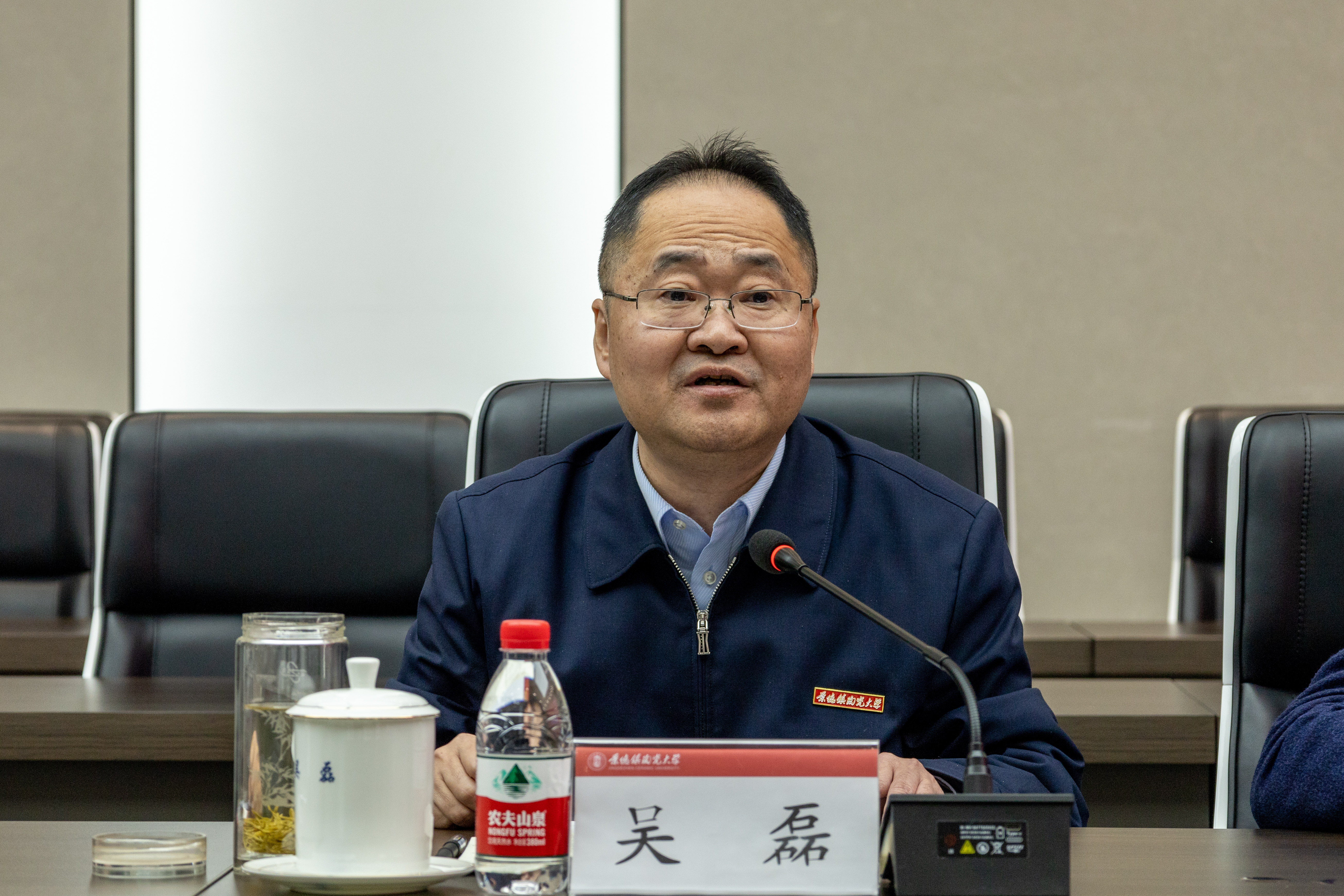 景德镇陶瓷大学党委书记蒲守智介绍了景德镇陶瓷大学的基本情况,希望两校今后进一步加强交流、深化合作,增进友谊、共谋发展。