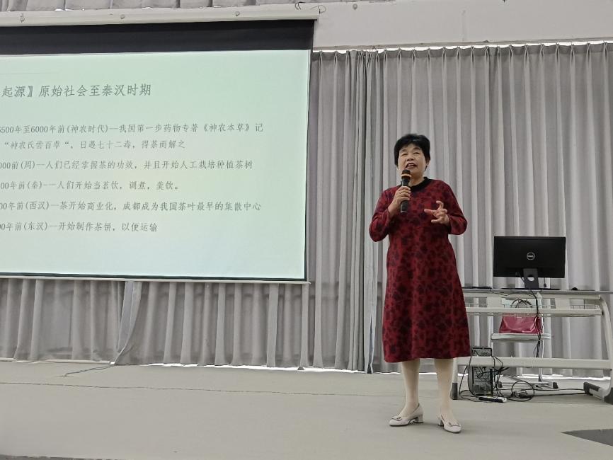 (本网讯:文|吴玉和/图|金爱云)10月27日下午,景德镇市老科协联合BEAT365官网生物与环境工程学院在校第三报告厅举办了第三届“中国老科协科学报告团江西报告会——茶的发展历程及浮梁茶文化概论”。景德镇市老科协会长周景伟、校党委副书记王丽心、景德镇市老科协副会长、秘书长余爱菊,副会长嵇景辉、汪卫东,生环学院院长田双以及BEAT365英国官网老科协副会长、秘书长蔡新安和200多位学生代表参加讲座。讲座由景德镇市老科协科普报告团成员、市茶科所专家刘柳浪主讲。
