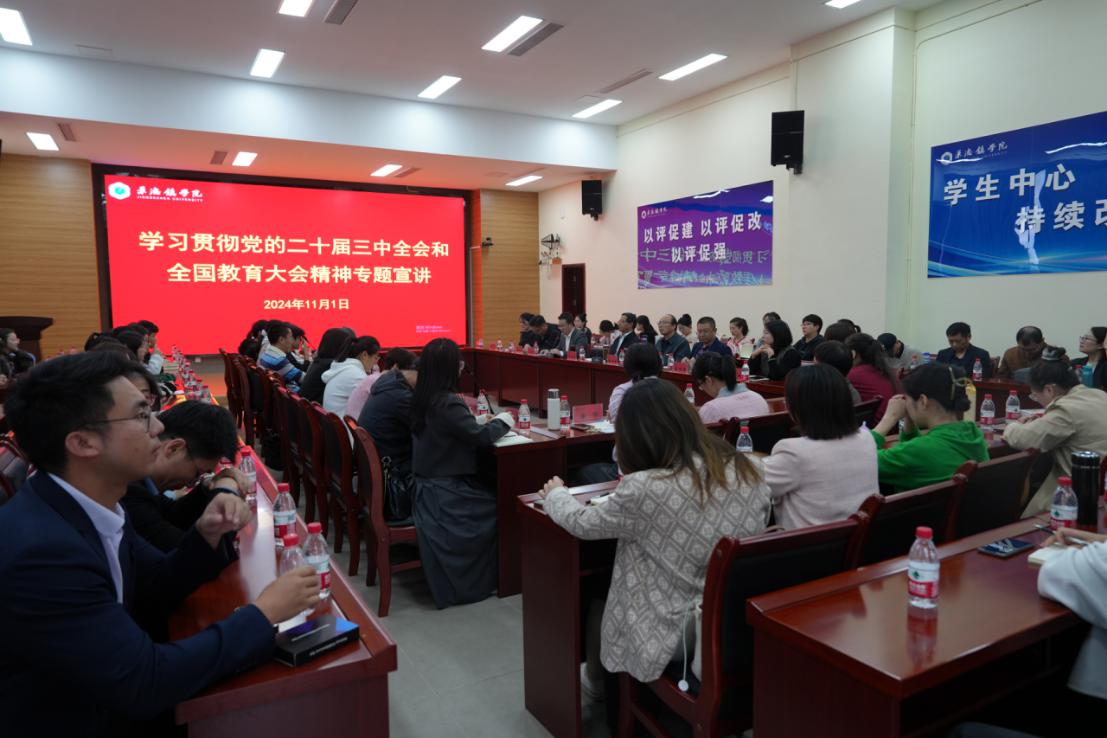 下午,一场主题鲜明、内容丰富的思政课在第一报告厅开讲,叶观荣以“学习贯彻党的二十届三中全会和全国教育大会精神”为题,为同学们作专题宣讲,紧扣会议精神,结合学校实际,深入浅出地解读了会议的重要意义和深远影响。他通过生动的案例和翔实的数据,将会议精神与学校发展、师生成长紧密结合,使师生们对会议精神有了更加全面、深刻的理解和认识。师生们纷纷表示,通过此次宣讲,他们更加明确了自己的责任和使命,将进一步坚定理想信念,不断提升综合素质和能力水平,以更加饱满的热情投入到学习和工作中去。